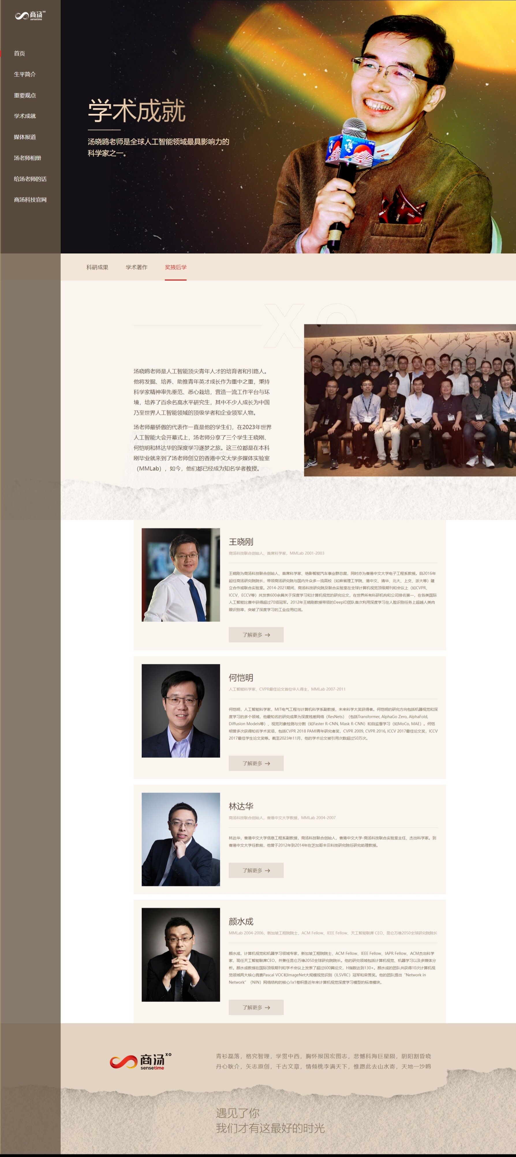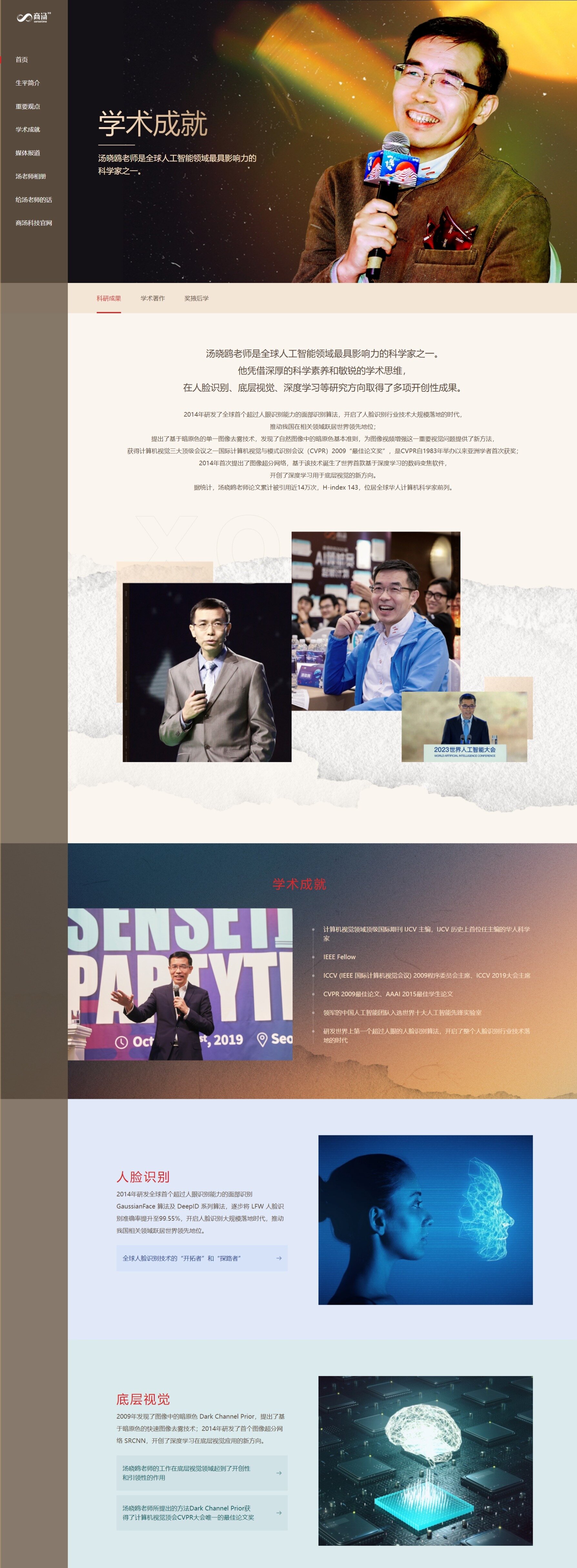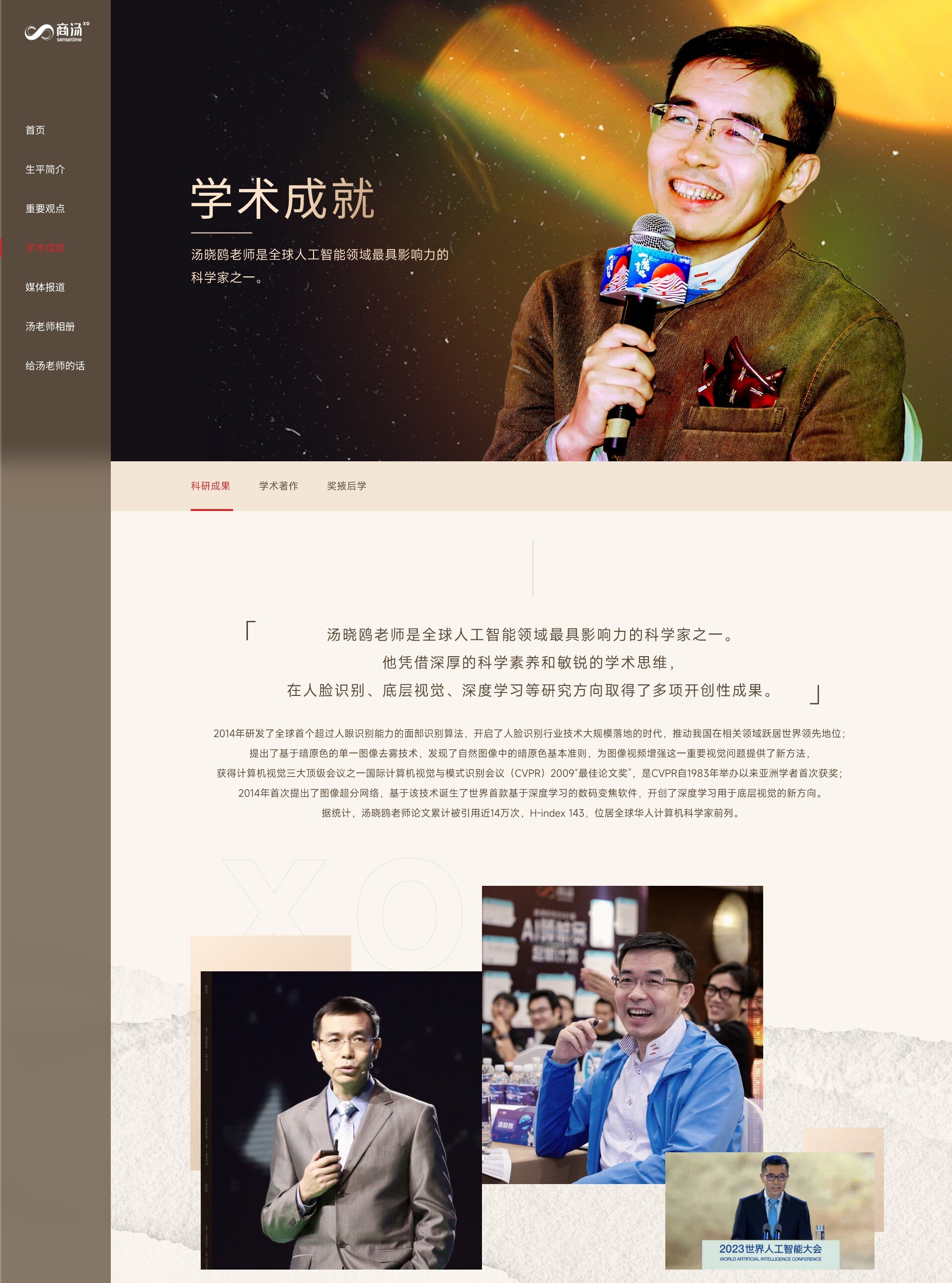 商汤科技的网站以鲜明的棕灰色为主色调,传递出活力与创新的品牌形象。辅以灰色、淡白色和棕色,平衡了整体的视觉感受。这种色彩搭配既体现了商汤科技在人工智能领域的领先地位和前瞻视野,又彰显了其深厚的技术底蕴和务实的工作态度。