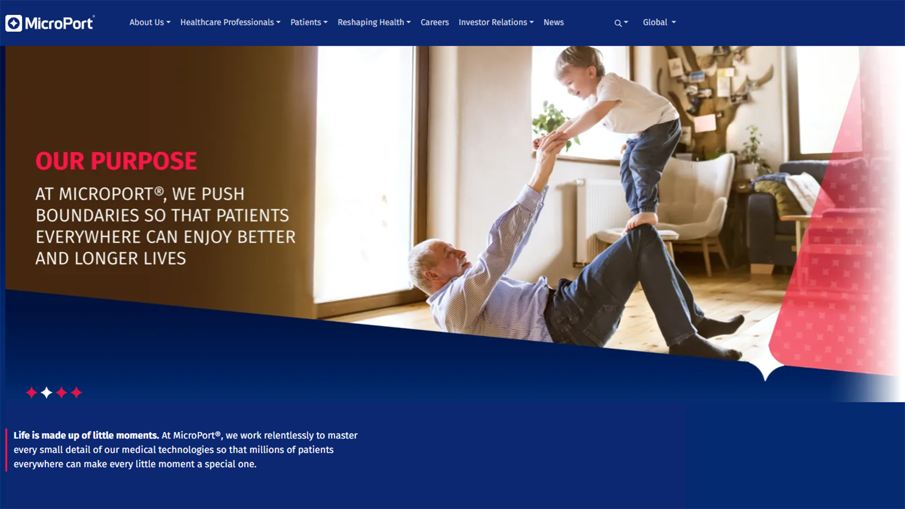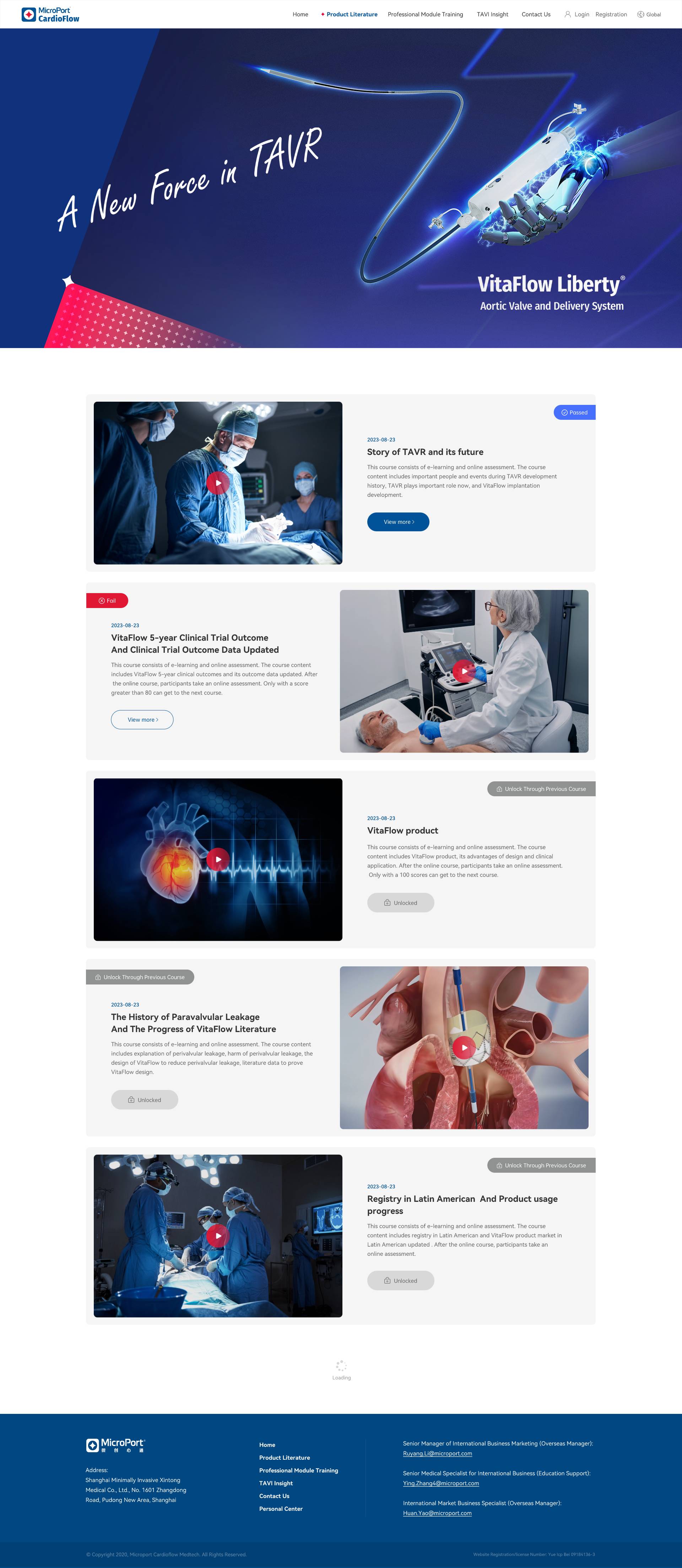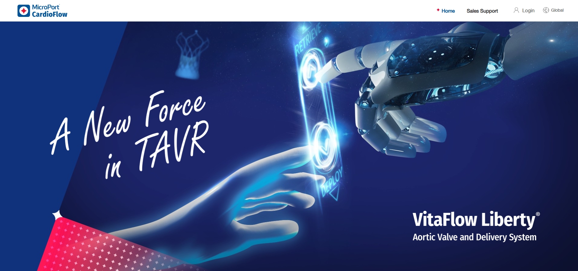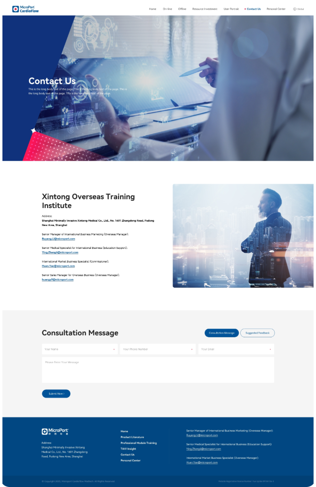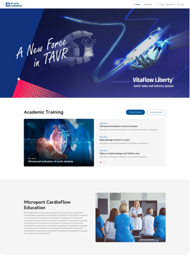 微创心通官网设计独特,以深蓝色为主调,彰显科技稳重与信赖,红白黑作为辅助色,增添活力与层次感。深蓝代表专业深邃,红色象征热情执着,白色强调纯洁专业,黑色增强视觉冲击力。整体设计体现了微创心通作为高科技医疗器械公司的专业形象,传递出公司对产品质量的严格把控和对用户需求的深刻理解,吸引患者与合作伙伴的信赖与关注。