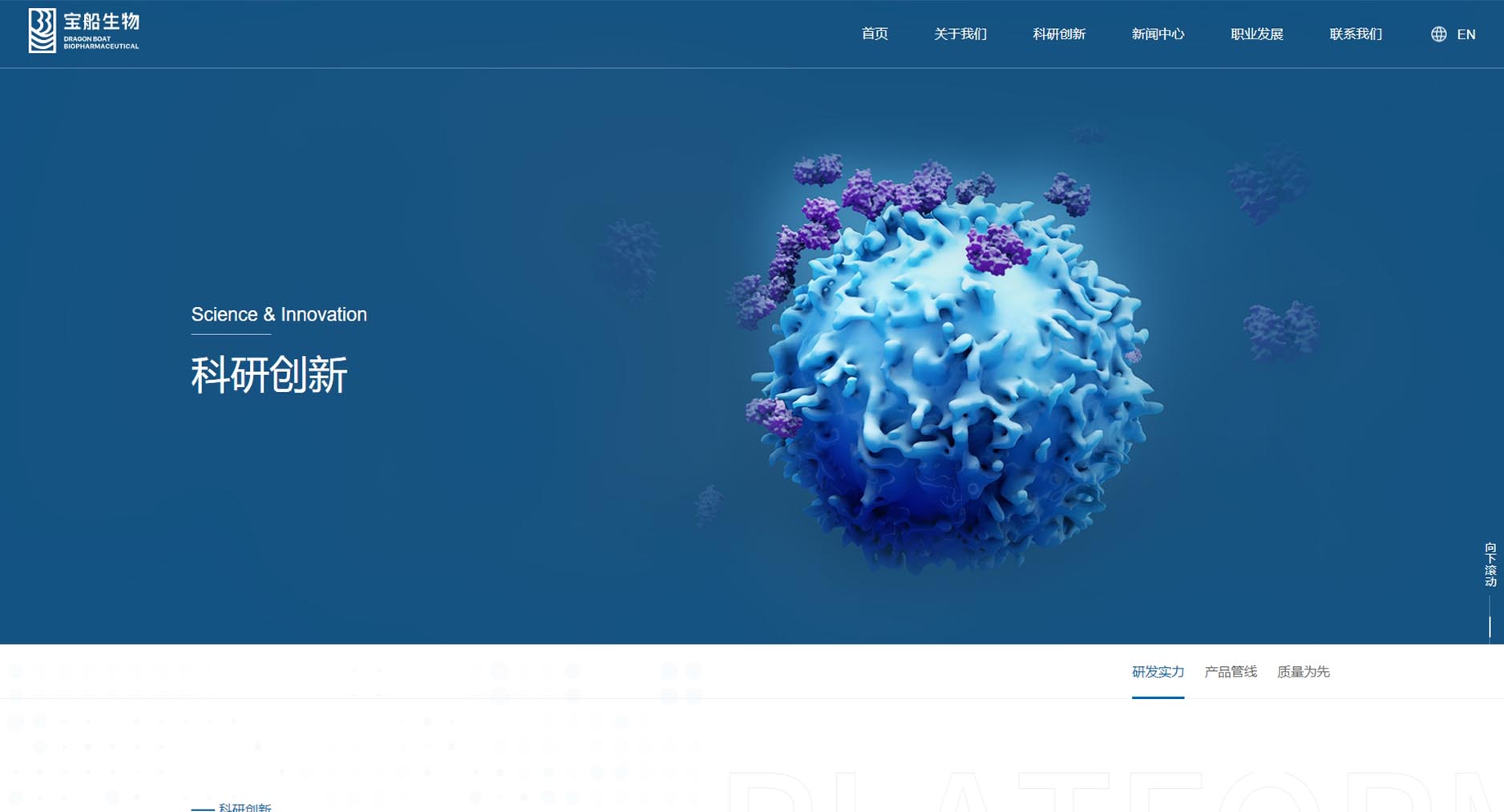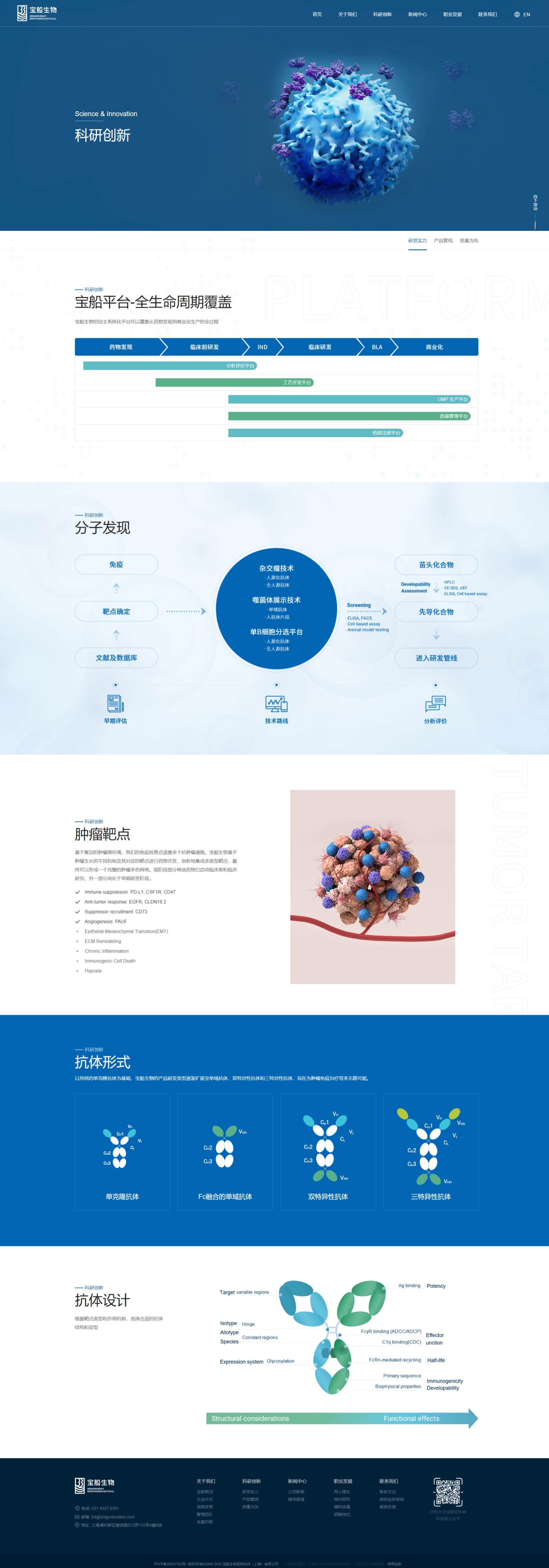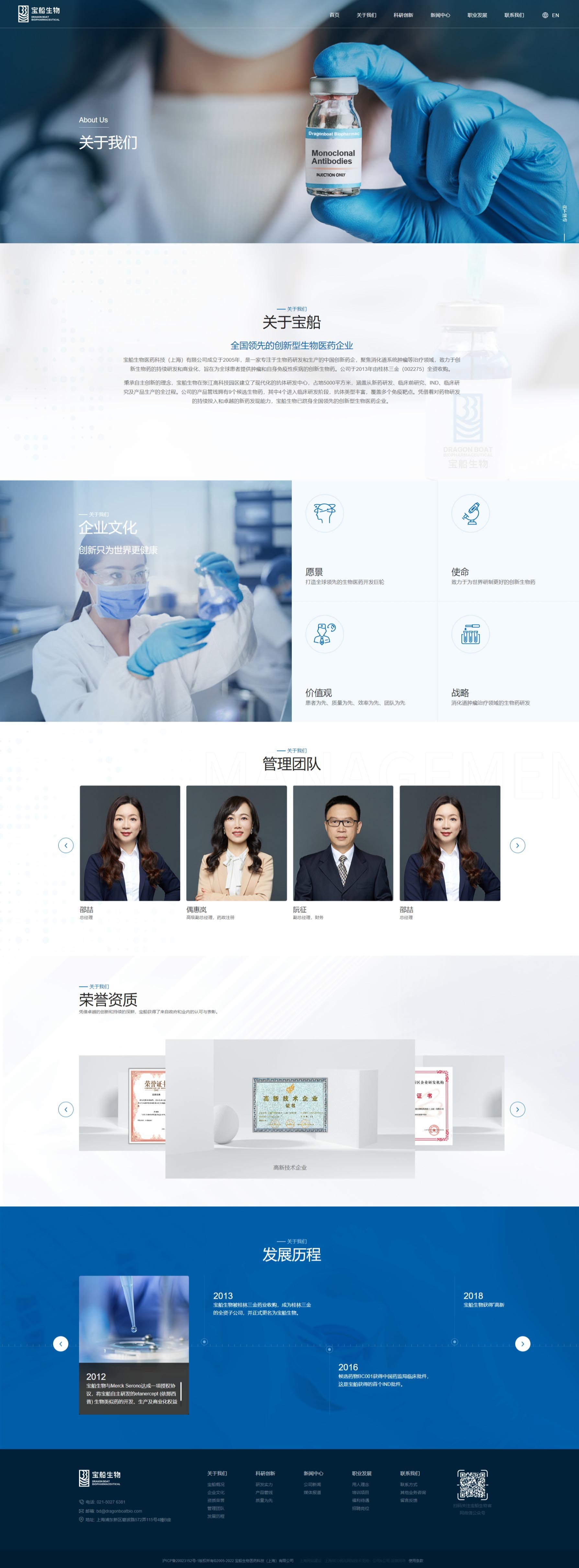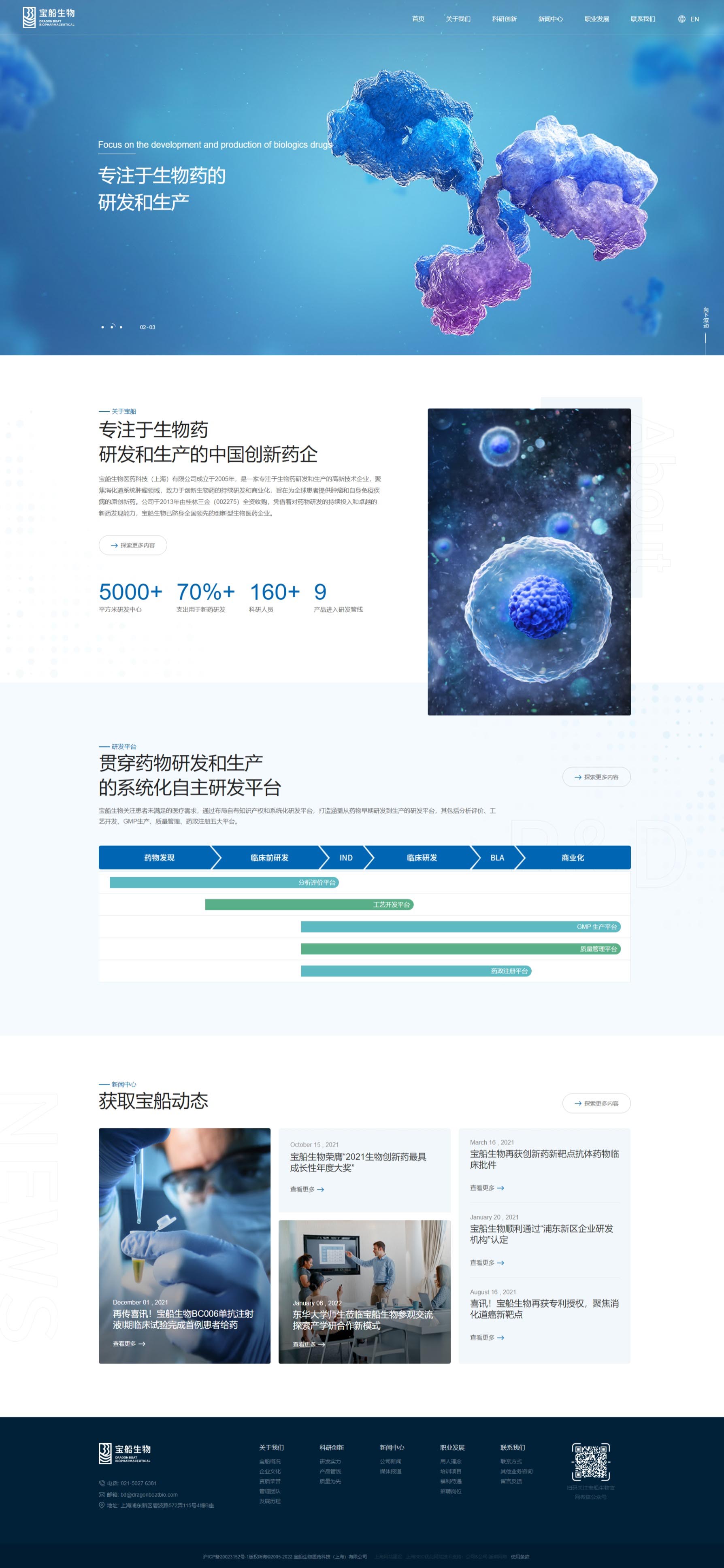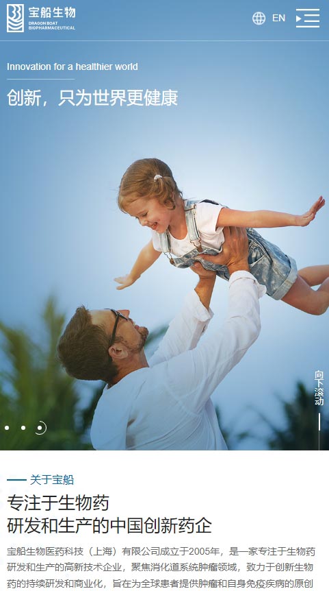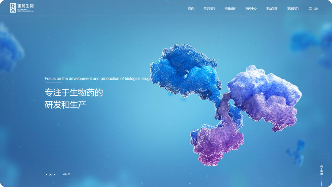 宝船生物制药网站风格定位为“专业创新,温馨信赖”。设计融合深蓝色调,彰显专业与稳重;现代布局与创意元素展现企业前沿创新力。温馨关怀的内容板块传递对患者健康的深切重视,增强品牌亲和力。