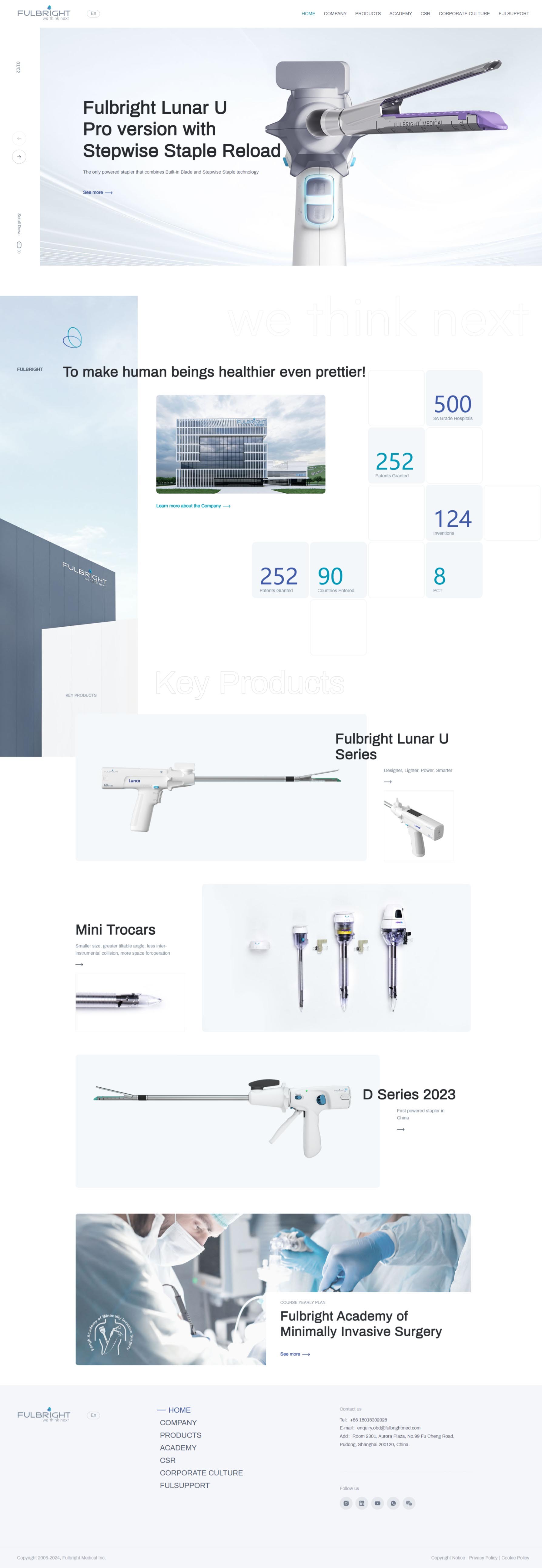 风和医疗器械网站设计精致,以白色为主色调,彰显专业与稳重,同时融合淡粉色与黑色作为辅色,增强视觉层次与信赖感。白色点缀其间,提亮页面,保持清新活力。色彩搭配既体现了医疗行业的严谨性,又传达了企业对未来科技的探索精神。