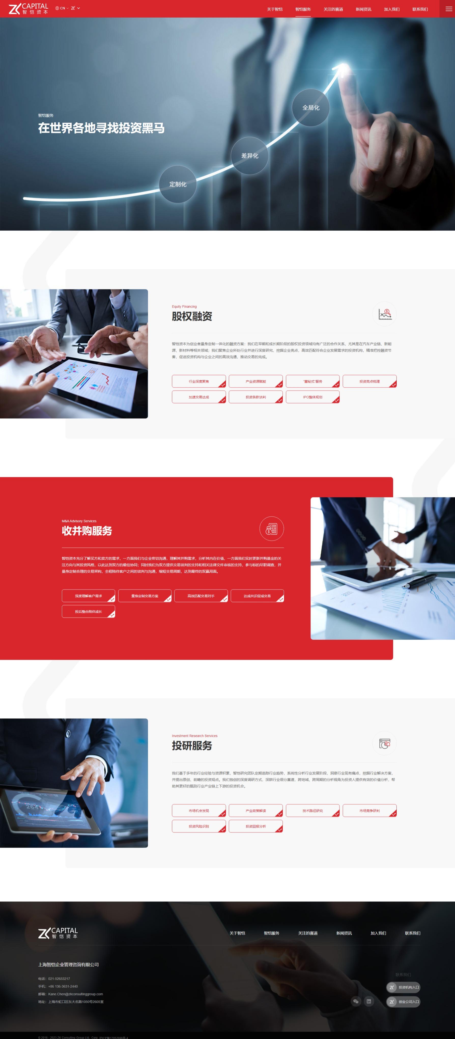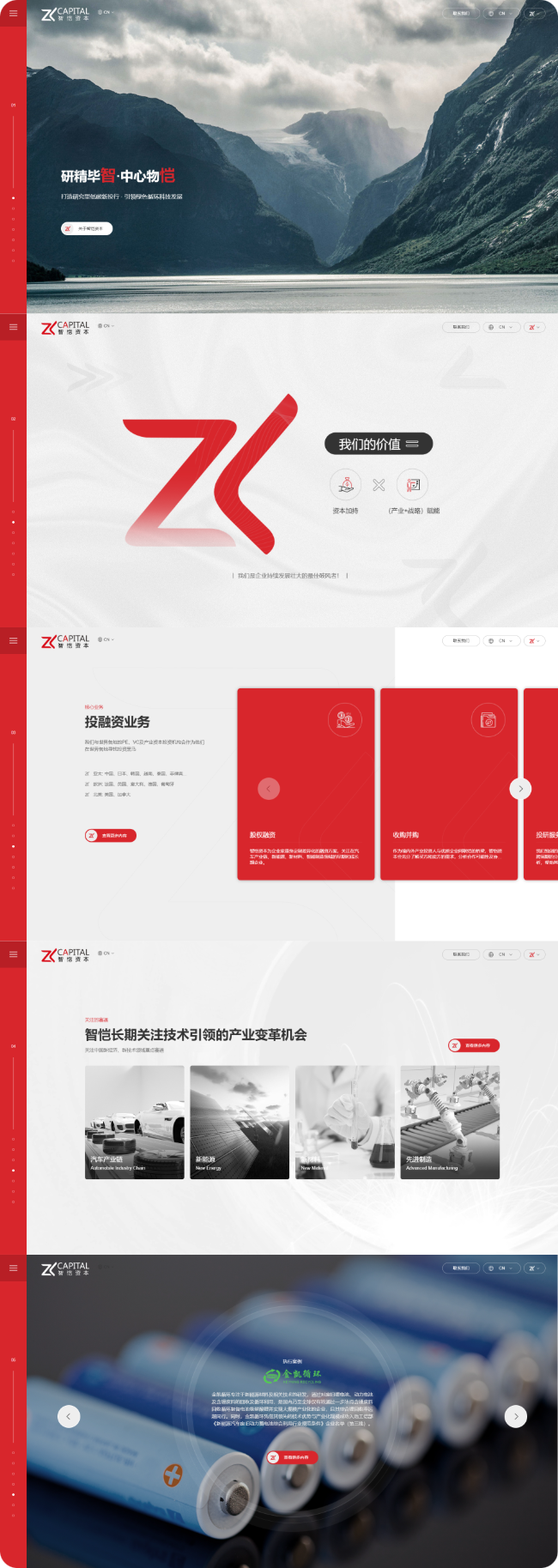 智恺资本官网设计独具匠心,以红色为主打,辅以灰、白、黑三色,既彰显企业活力与创新,又不失稳重与专业。红色主调引人注目,凸显品牌热情与前瞻;辅色则平衡视觉,营造现代简洁感。官网布局清晰,导航便捷,用户能迅速获取所需信息。