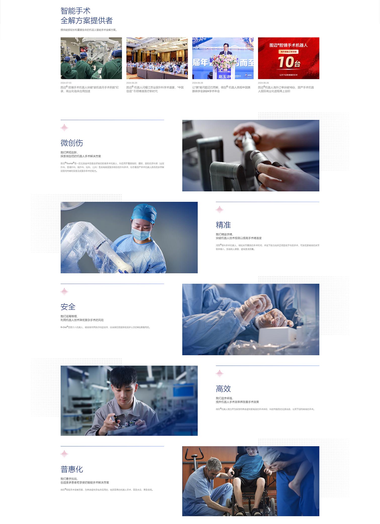 微创机器人网站风格定位聚焦专业信赖与人文关怀,强调科技创新与产品安全有效。内容覆盖专业用户与患者需求,提供详尽产品资料与疾病知识,构建全方位、多层次的在线交流平台,体现微创心通在心脏瓣膜领域的专业实力与人文关怀。