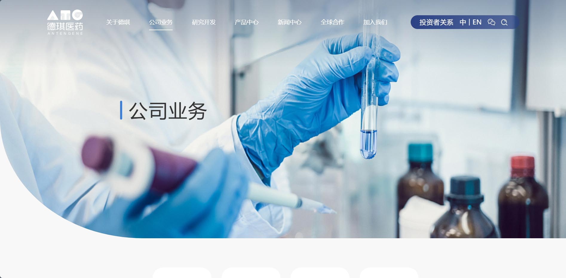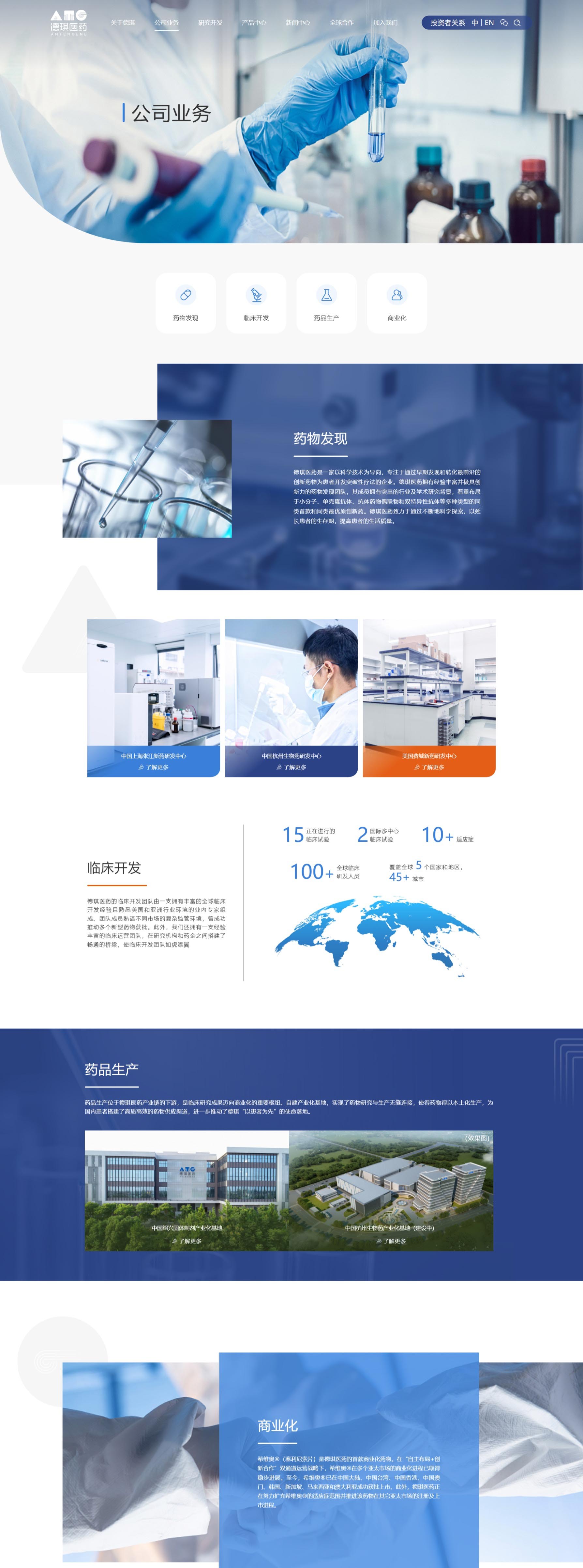 德琪医药官网风格定位突出专业、创新与科技感。视觉上以科技色调为主,营造严谨科研氛围。布局简洁合理,信息展示精准清晰,方便用户快速定位。内容语言严谨专业,兼顾科普性,用图文形式展现研发成果与实力。交互设计注重用户体验,设有便捷导航,保障浏览顺畅。整体风格旨在与科研人员、患者、合作伙伴建立深度连接,传递创新理念与对生命健康的关怀,打造专业高效且充满人文关怀的线上平台,凸显其在生物制药行业的高端品牌形象与独特魅力。