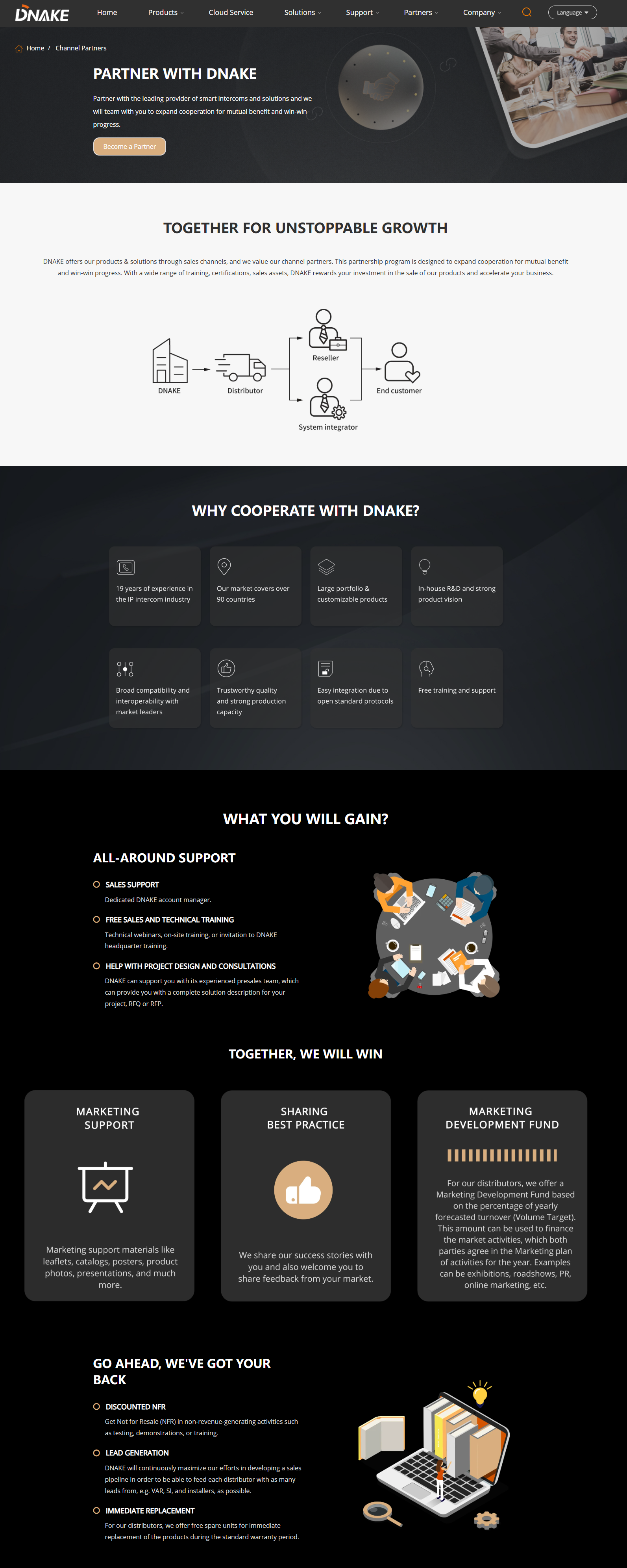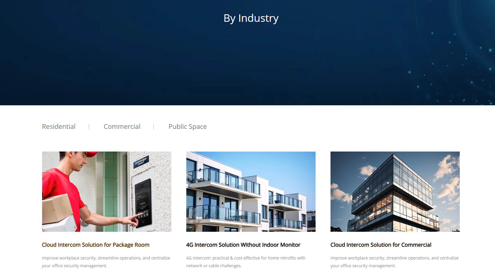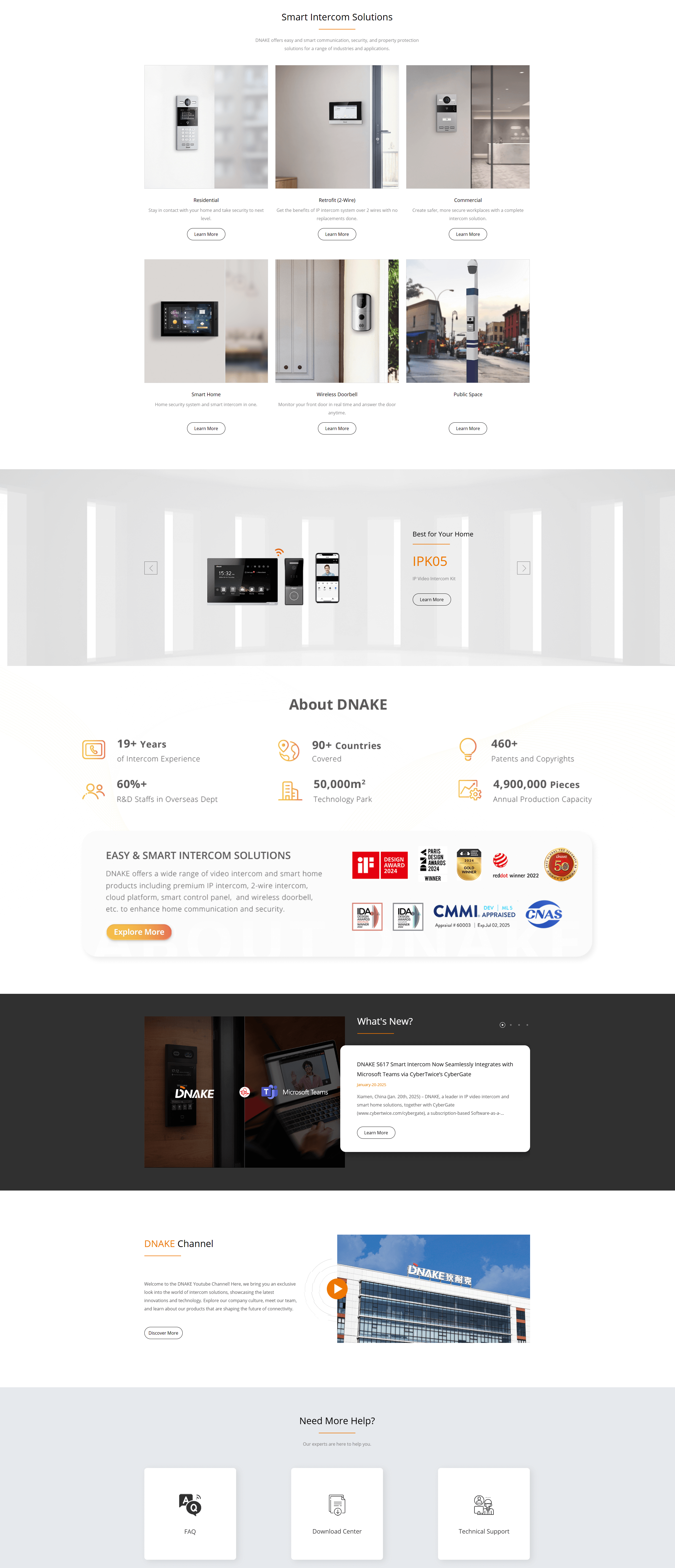 核心产品聚焦:在首页中心位置设置较大的轮播图或产品矩阵,展示热门或最新的对讲机及智能家居产品,如获奖产品或新推出的门站扩展模块等,配合醒目的宣传语和产品亮点介绍,吸引用户的注意力并引导其点击查看详情,突出公司的核心产品竞争力。 场景应用引导:在轮播图下方或侧边栏设置不同应用场景的导航按钮或图标,如住宅、商业、公共空间等,点击后可快速跳转到相应的解决方案页面,帮助用户根据自身需求快速定位到合适的产品和服务,强化网站的实用性和用户导向性。