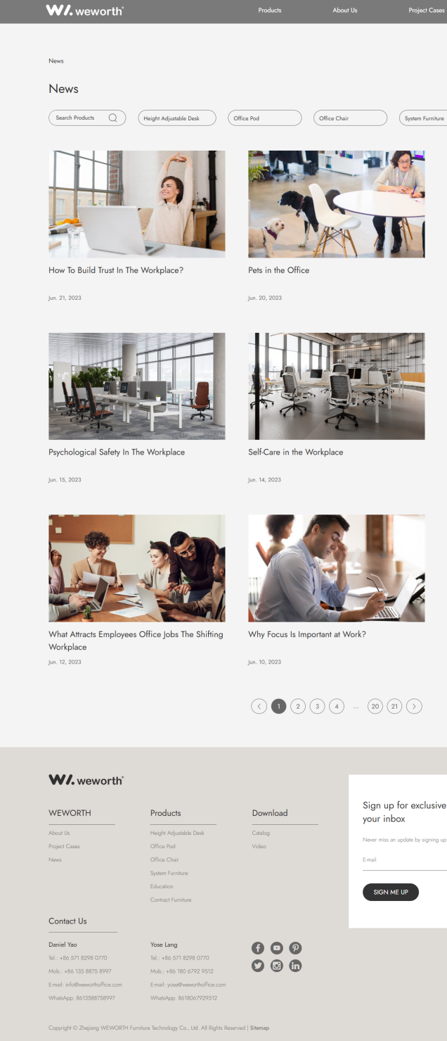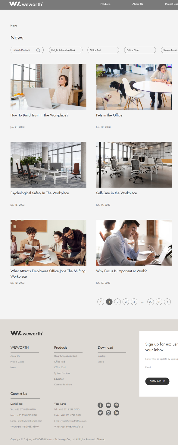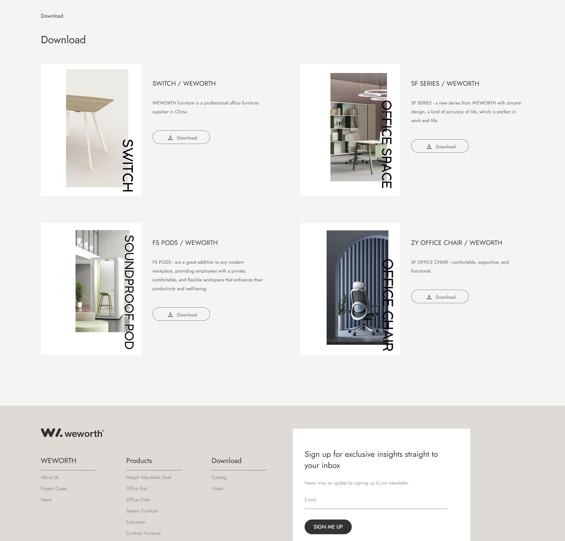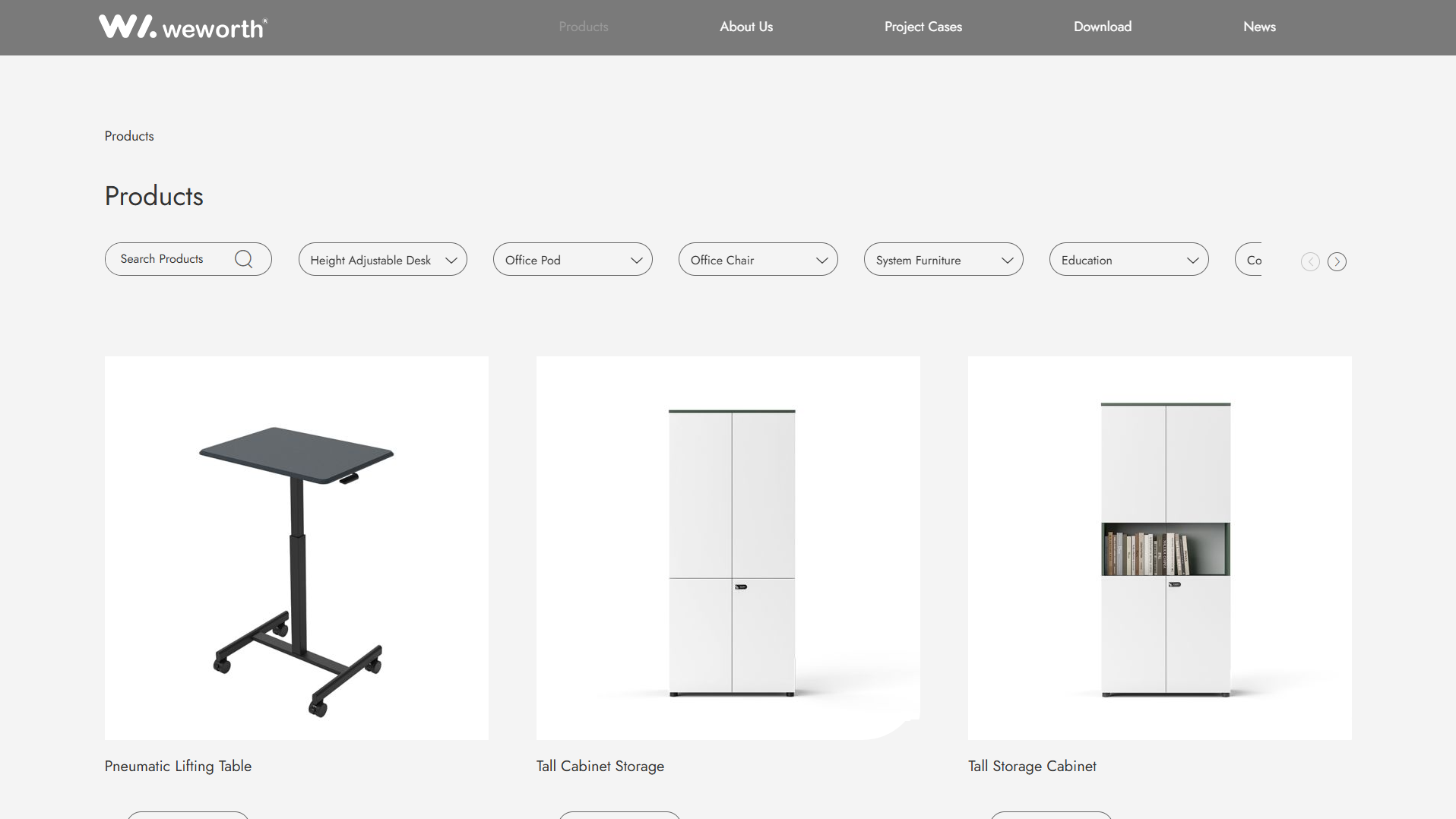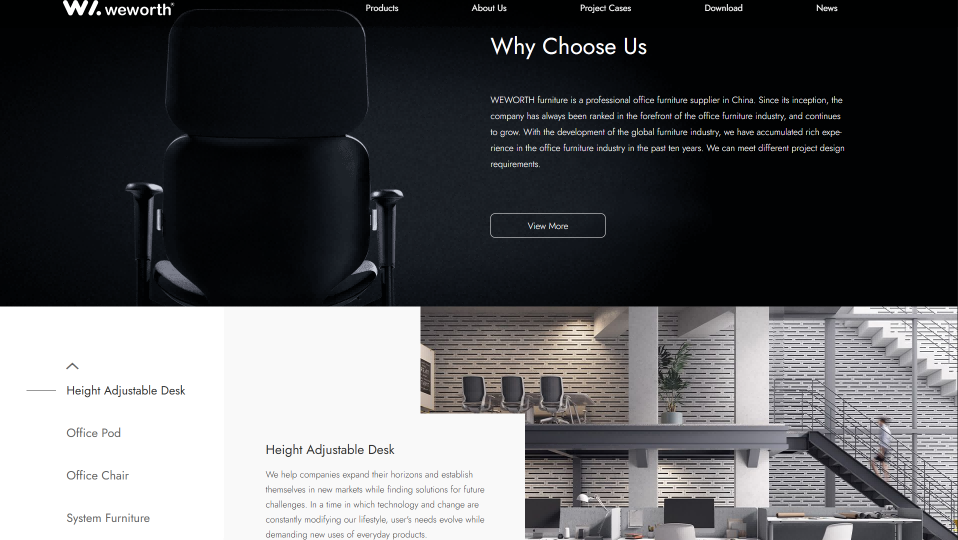 网站旨在全面展示 WEWORTH 的办公家具产品线,突出其设计优势与丰富经验。通过各产品分类介绍、品牌合作展示及行业新闻分享,向客户传递企业专业形象与实力。吸引企业客户关注,满足其办公空间规划与家具采购需求,提升品牌在办公家具市场的知名度与影响力,促进业务增长与行业交流。